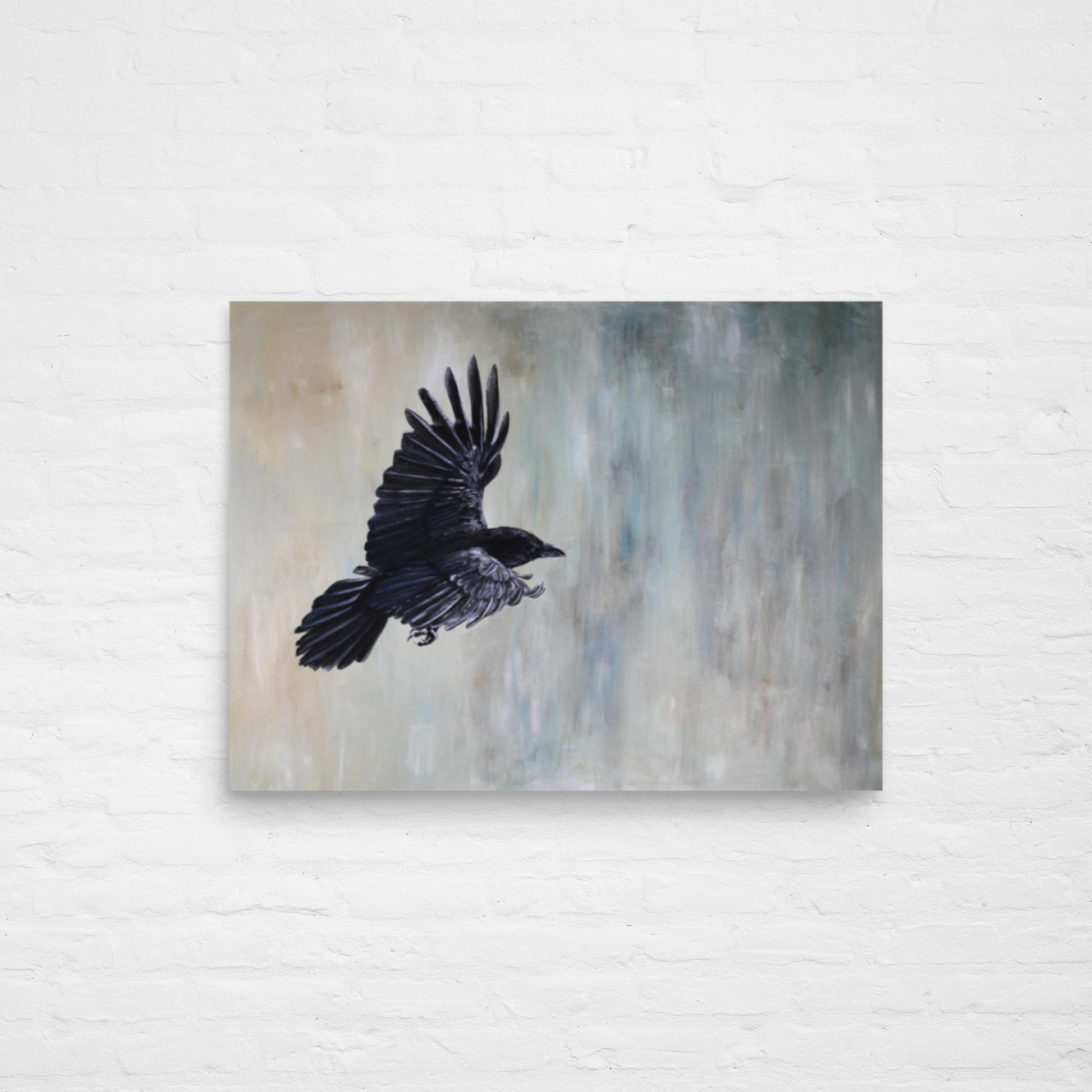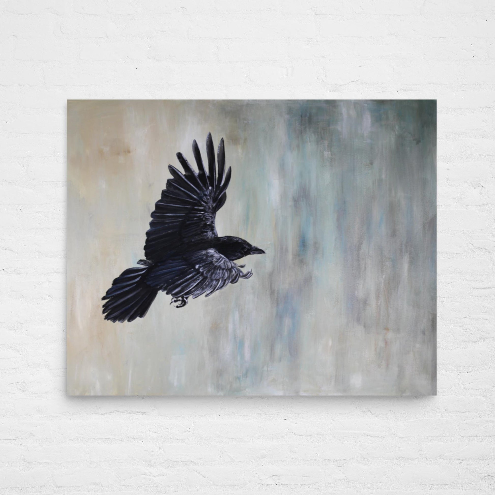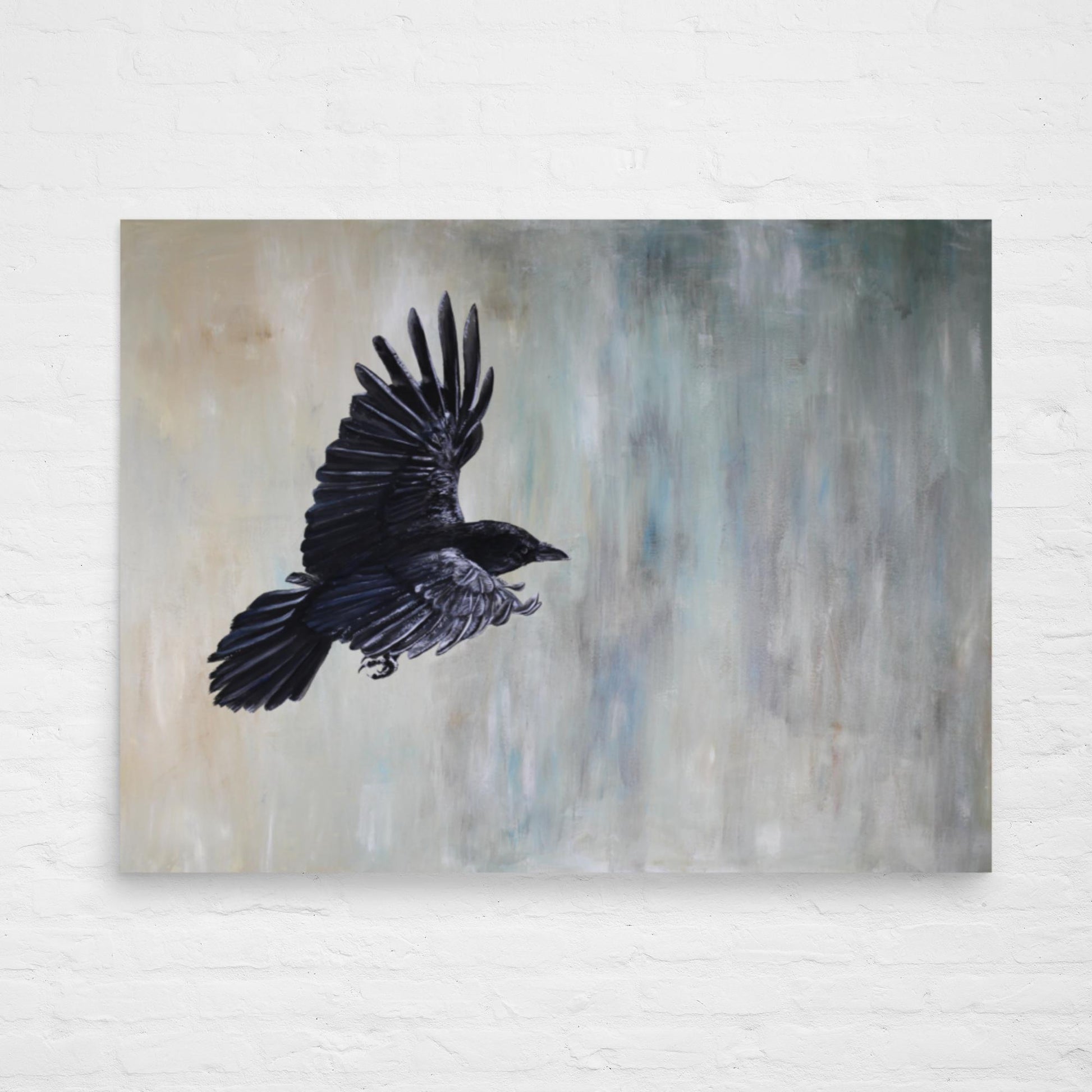 Ravens can be known as a symbol of prophecy and loss. This one's headed right into a storm. If you’re looking for some moodier artwork to cozy up your space - this dark messenger might be for you.