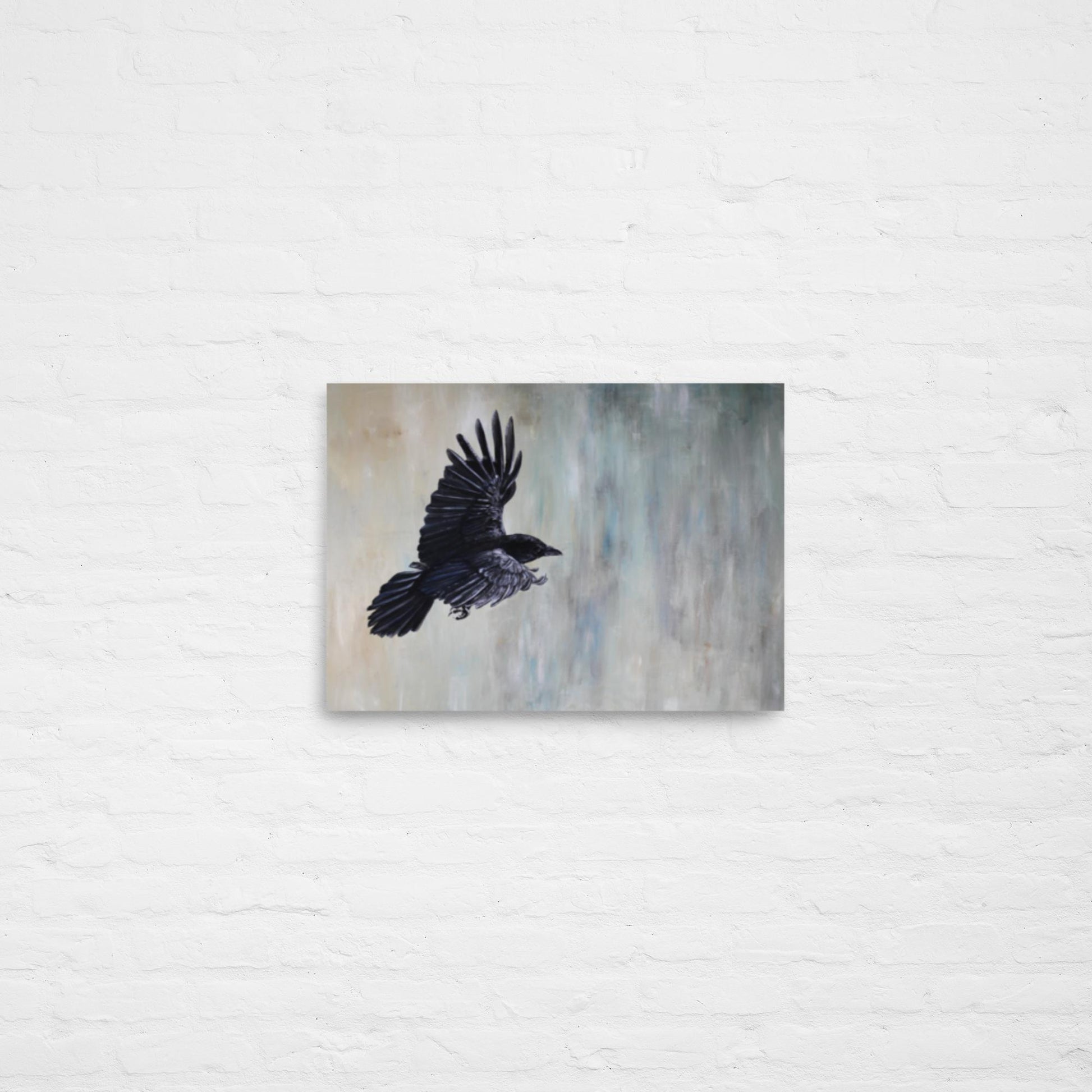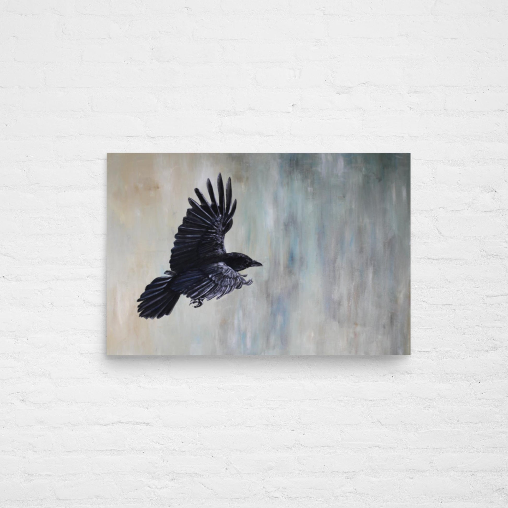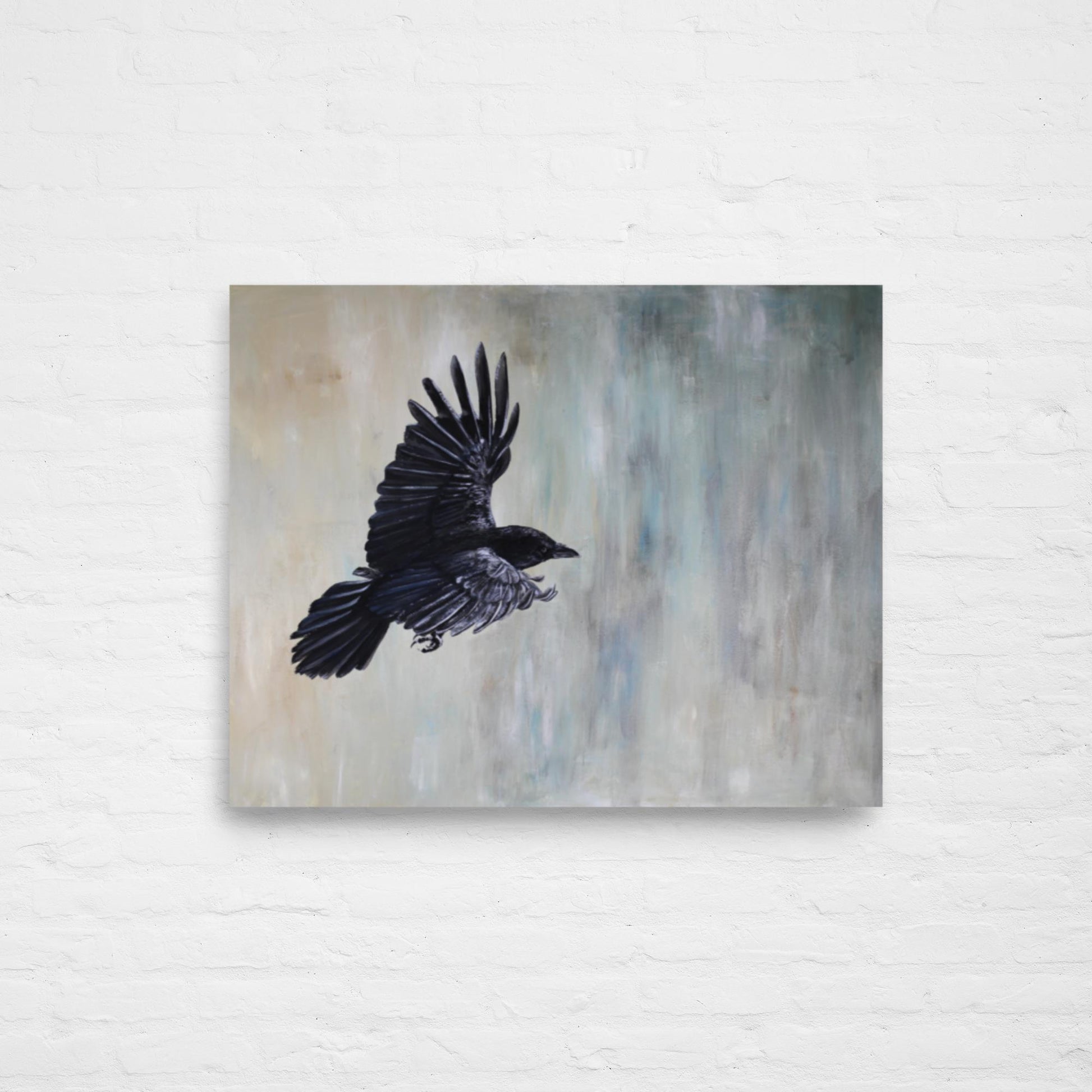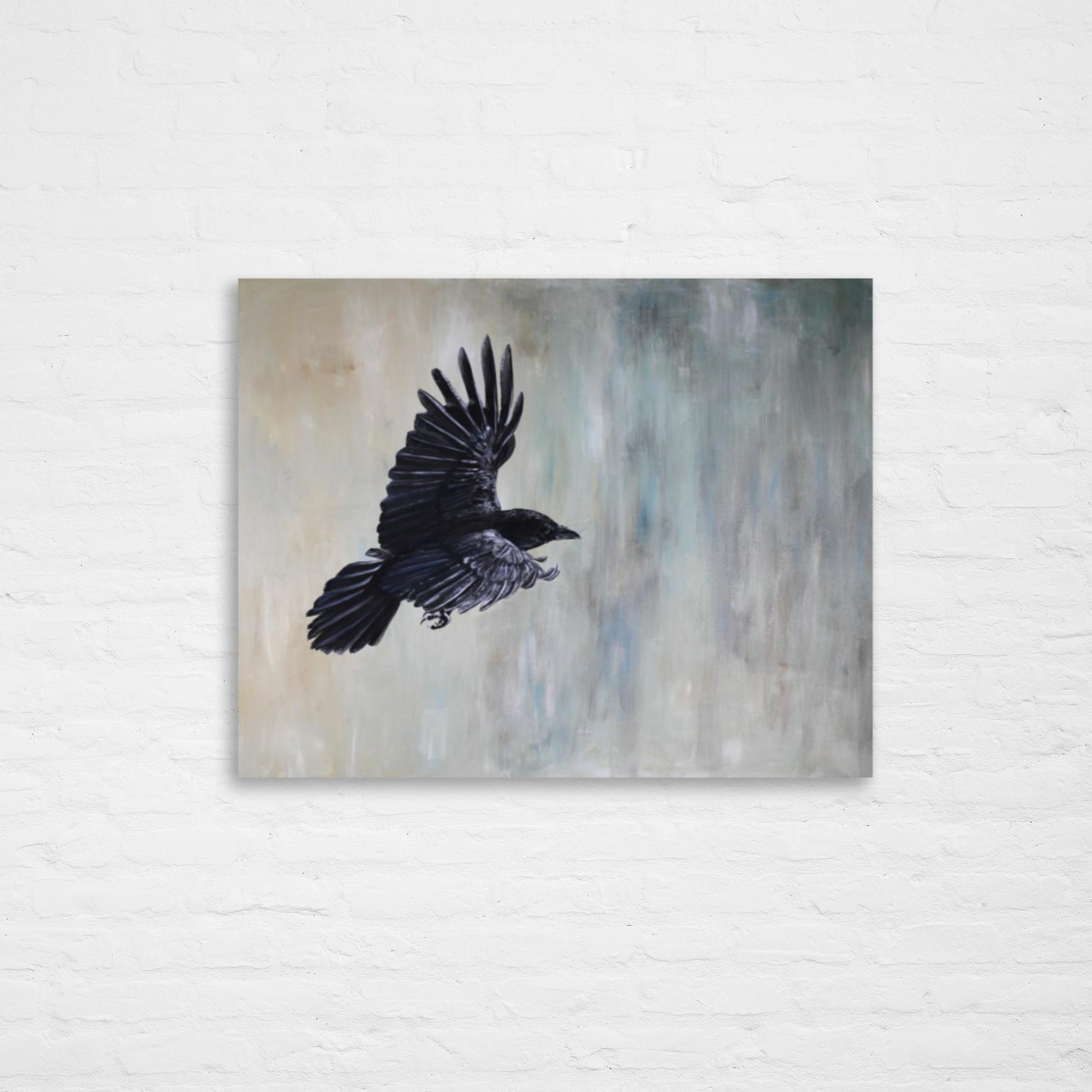 Ravens can be known as a symbol of prophecy and loss. This one's headed right into a storm. If you’re looking for some moodier artwork to cozy up your space - this dark messenger might be for you.